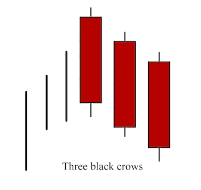 The three black crows pattern is mostly used by long-term traders as it takes three sessions to unfold.